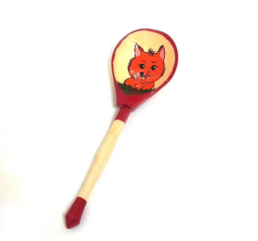 Ложка дерев. полубаская столовая,сувенирная роспись Лисичка