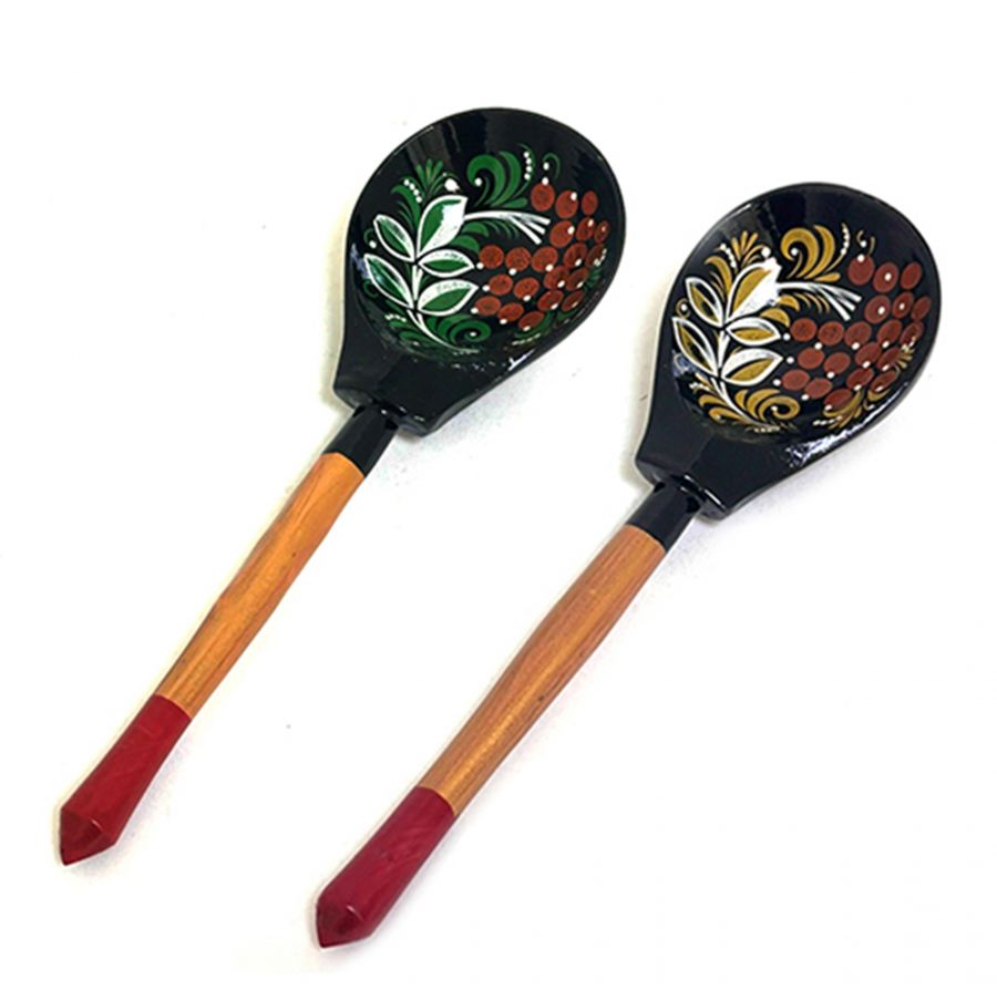 Ложка дерев. столовая,сувенирная,роспись Хохлома Чернушка 19см, черпачок 6см