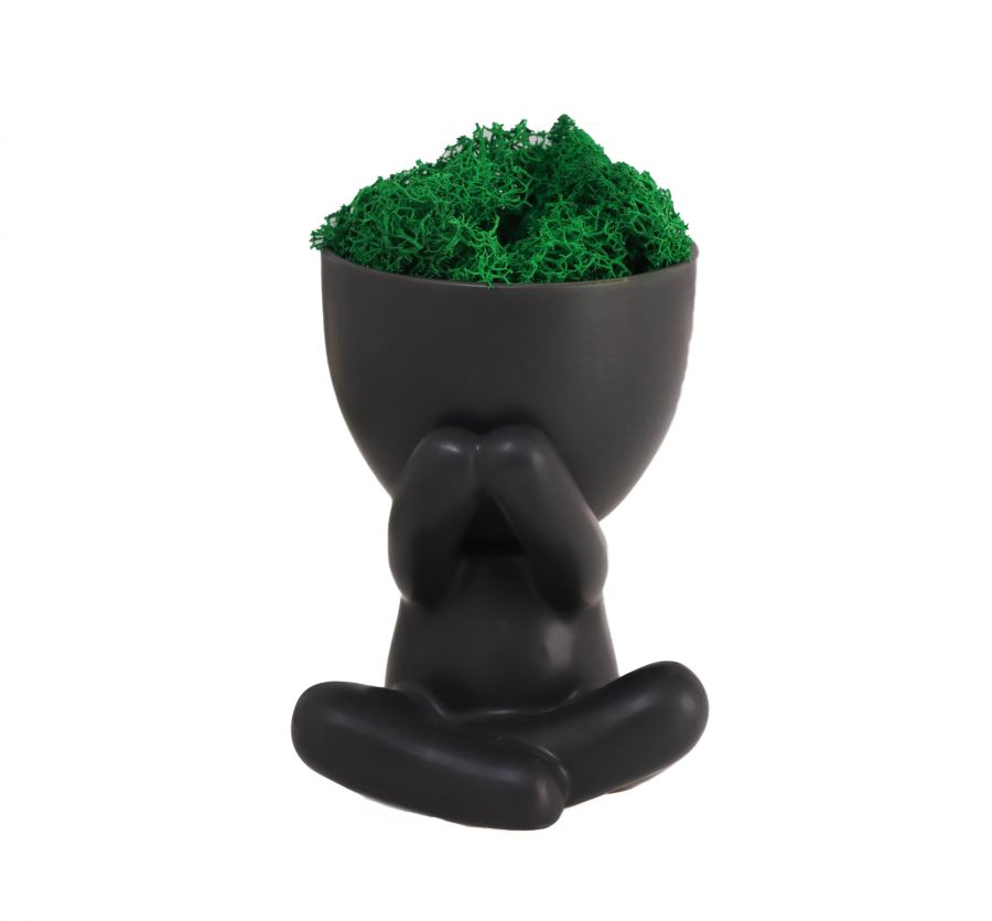 Кашпо из керамики 10*7,5*8 см со стаб.мхом «Мистер Грин любитель тишины», чёрный