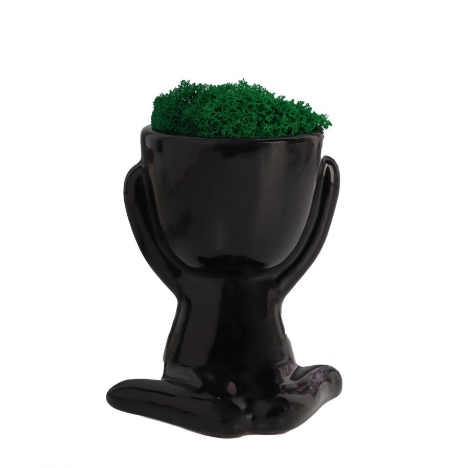 Кашпо из керамики 11.5*10*9 см со стаб.мхом «Мистер Грин любитель тишины», чёрный