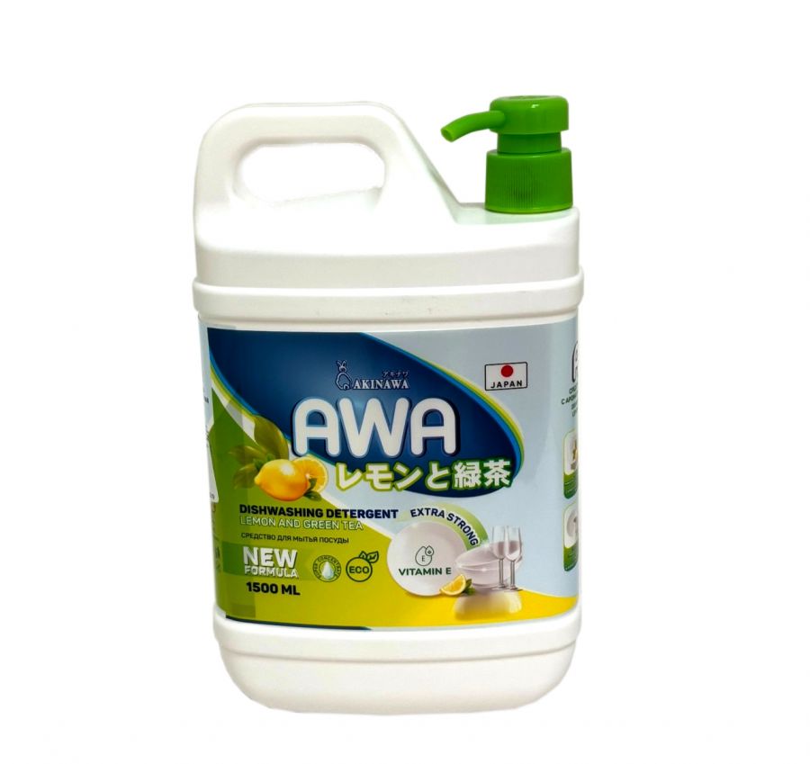 Средство д/мытья посуды 1,5л AKINAWA Лимон и Зеленый чай /8