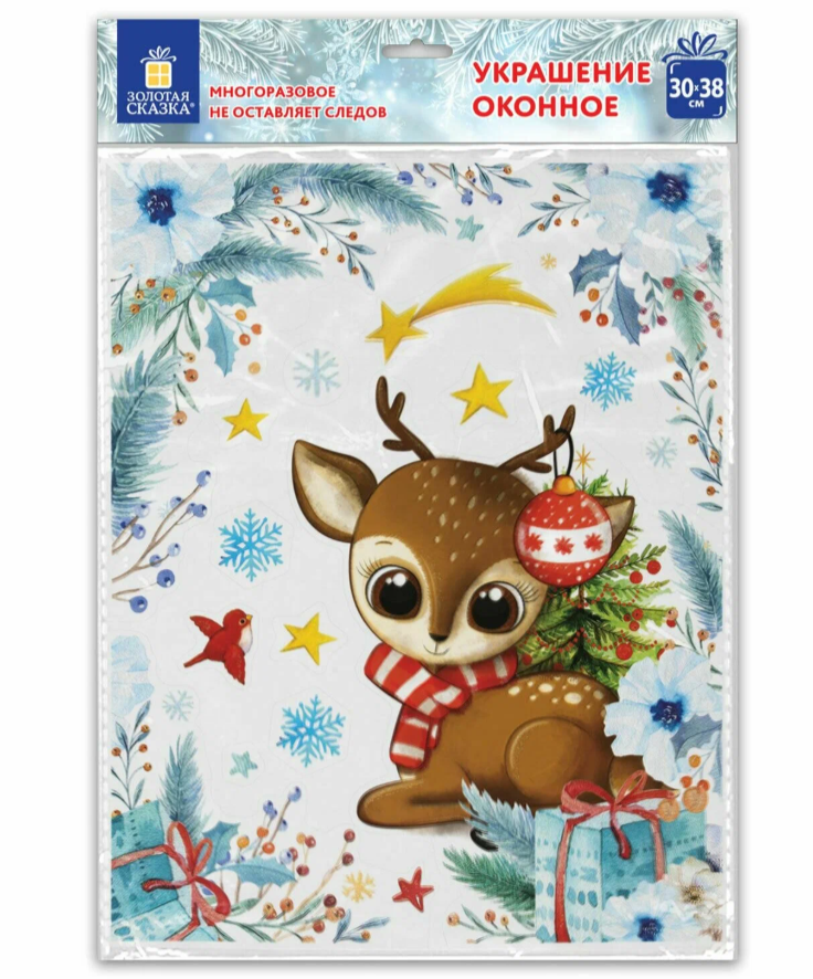 Наклейка на стекло двусторонняя МНОГОРАЗОВАЯ 30*38см Оленёнок, ЗОЛОТАЯ СКАЗКА