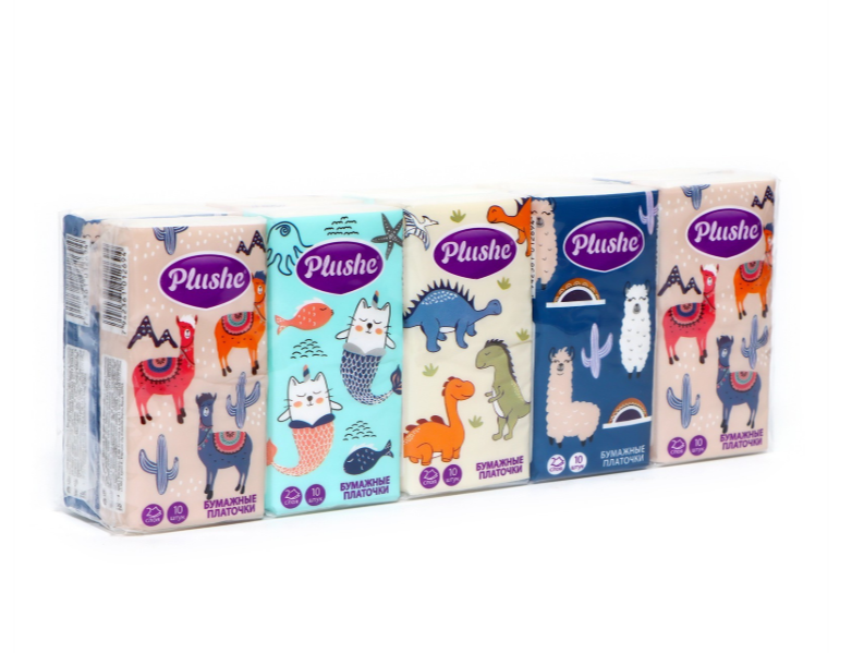 Платочки бумажные 2сл.10шт PLUSHE Classic Standart в ассортименте