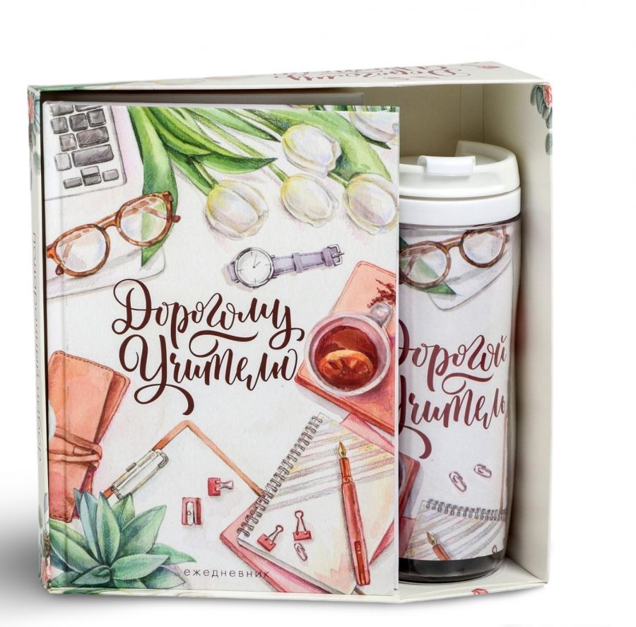 Подарочный набор, ежедневник А5, 80 листов, термостакан 350 мл «Дорогому учителю»