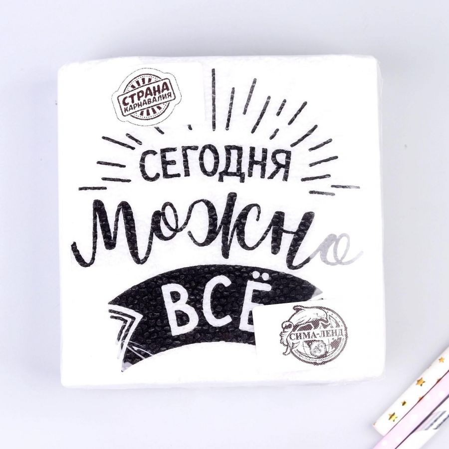 Салфетки бумажные «Сегодня можно всё», однослойные, 24*24 см, набор 20 шт.