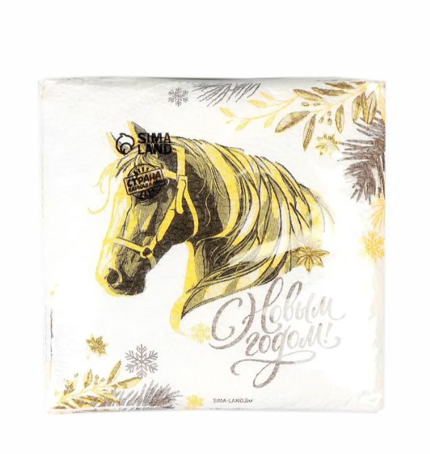 Салфетки бумажные 24*24 см,20 шт «Золотая лошадь», однослойные