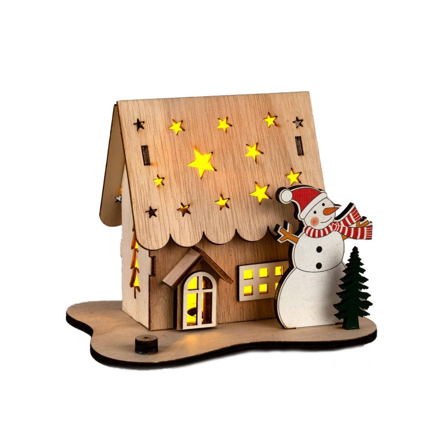 Светодиодная фигура «Дом со снеговиком» 11*15*3 см, дерево, батарейки LR41х3 (в комплекте), свеч