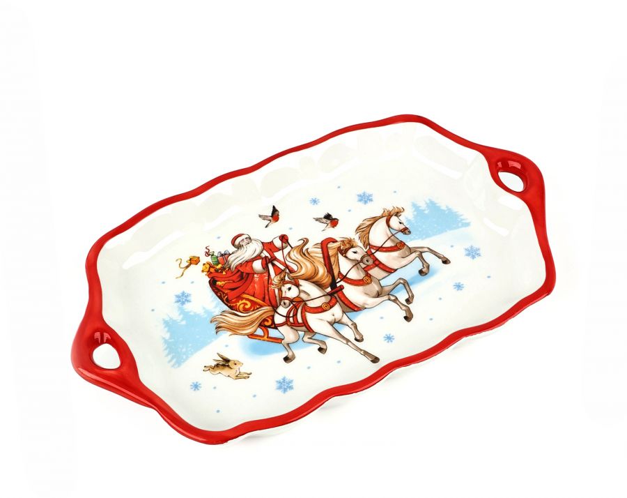 Блюдо 23*13*2.5 см,керамика новогоднее «Тройка», ручная работа