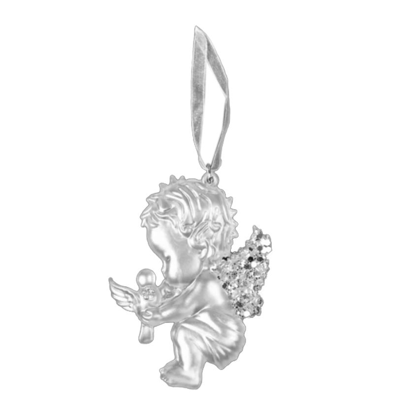 Ёлочная игрушка 10*7 см Ангелочек с голубем» пластик белый