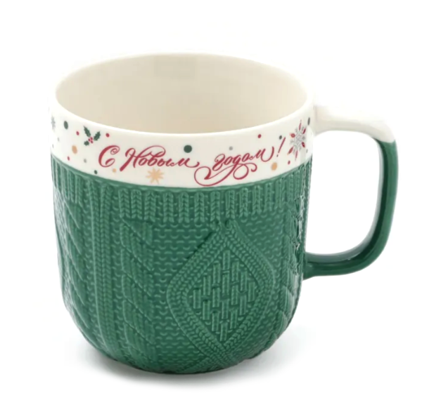 Кружка 380 мл, фарфор,новогодняя «Праздничное настроение», зелёная