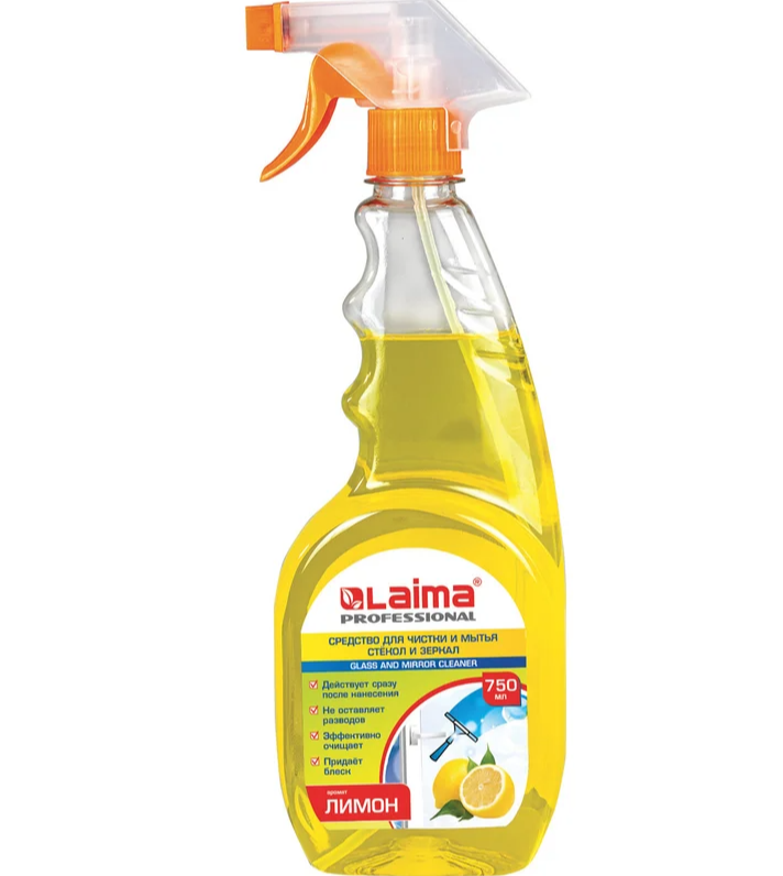 Средство д/мытья стекол и зеркал 750мл, LAIMA PROFESSIONAL Лимон,распылитель
