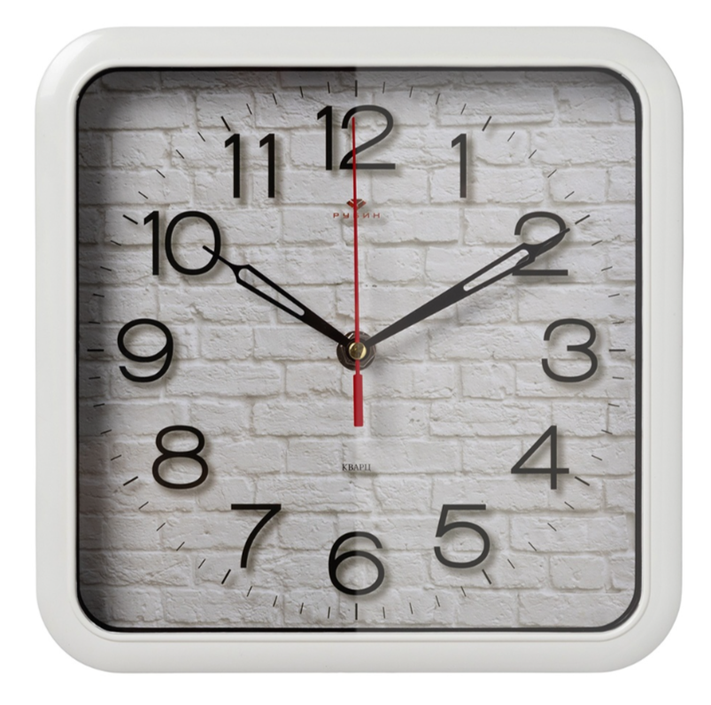 Часы настенные квадрат 22*22см, плавный ход,корпус белый Фактура Рубин