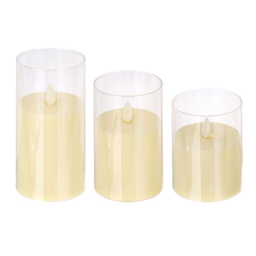 Набор дек.светильников LED в виде свечи 3шт в стакане 7,8*10см/12,5см/15 см,эффект движения пламени
