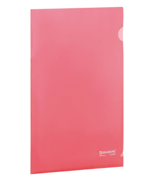 Папка-уголок жесткая BRAUBERG красная 0,15мм, 221640