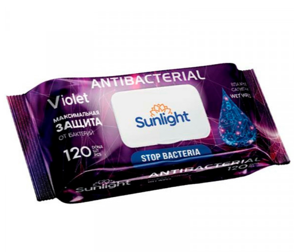 Салфетки влажные 120шт Abtibacterial Violet (с клапаном)SUNLIGHT/12