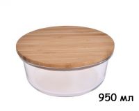 Контейнер д/СВЧ 950мл круг стекло бамбук/крышка