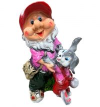 Садовая фигурка из гипса Гномик с зайкой 47см