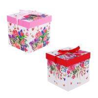 Коробка подарочная складная с лентой, бумага с фольгированным слоем 15*15*15 см, цветы, 2 дизайна