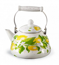 Чайник эм. 3,5л Клубника садовая,зеленый рябчик с петлей
