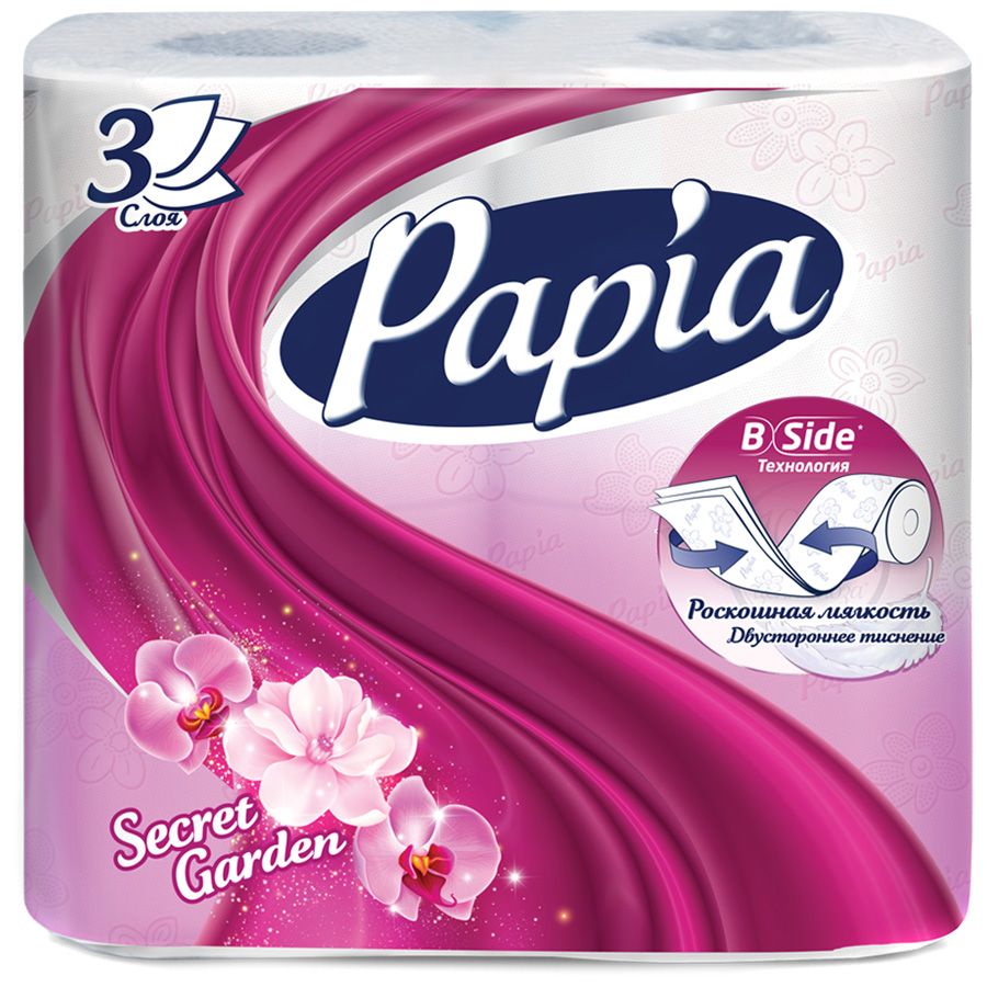 Туалетная бумага PAPIA 3сл.4рулона белая с ароматом Таинственный сад