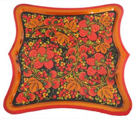 Тарелка большая фигурная Квадратная хохлома