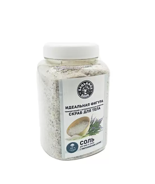 Соль-скраб в баню С эфирным маслом Шалфей 850гр. ТМ Бацькина баня