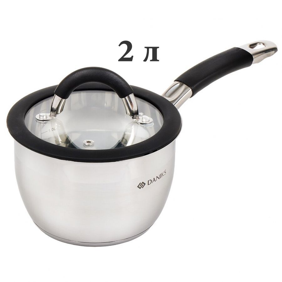 Ковш нерж. 1,9л 16см ст/кр., силикон. ручка, индукция,Орландо Daniks