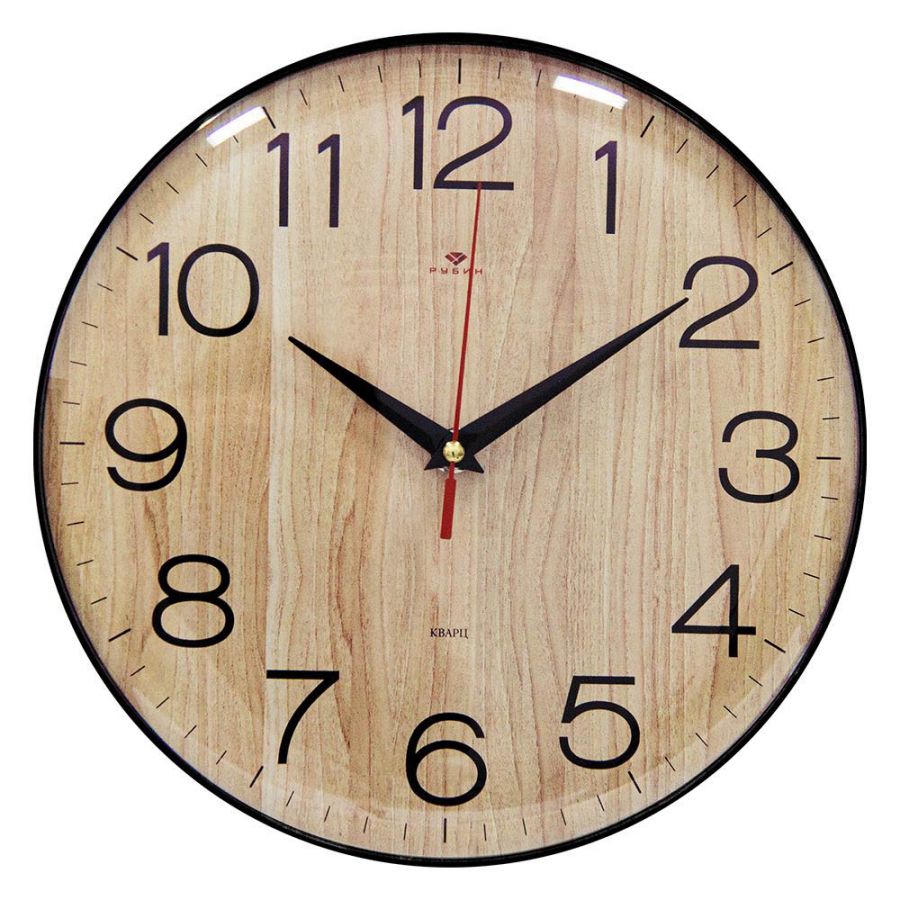 Часы настенные круг д24,5см,плавный ход,основание черное Текстура дерева