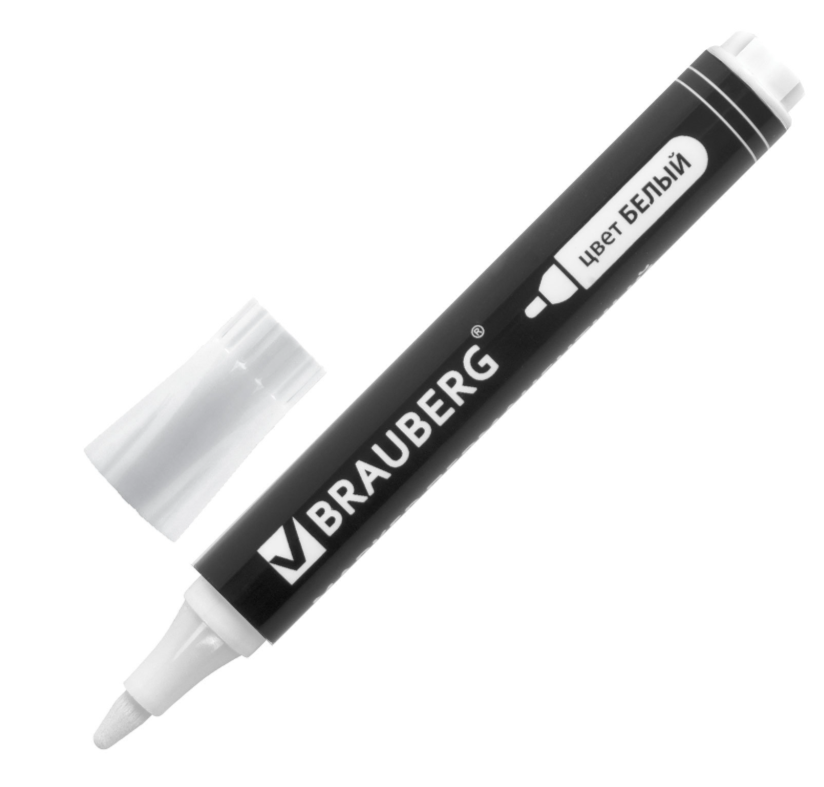 Маркер перманентный БЕЛЫЙ, BRAUBERG W5, круглый наконечник 5 мм, 151506