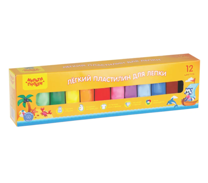 Легкий пластилин для лепки Мульти-Пульти, 12 цветов, 120г, картон