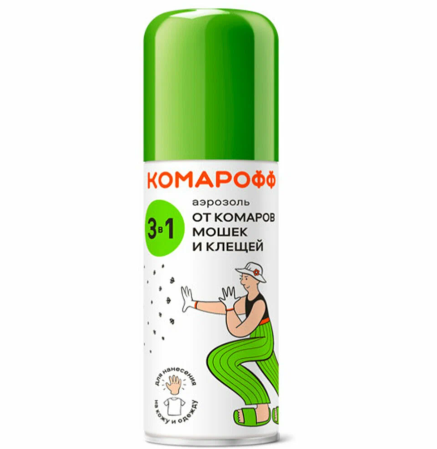 Аэрозоль 100мл от комаров/клещей/мошек 3в1 Комарофф /24