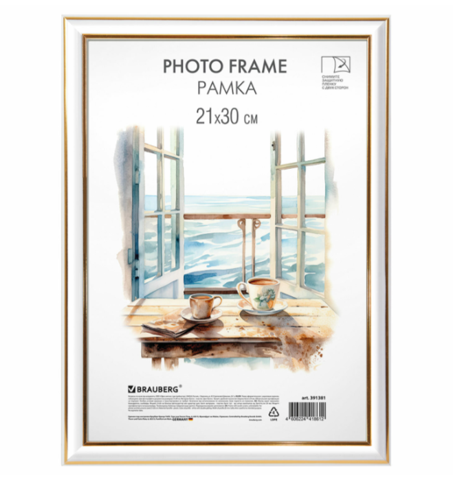 Рамка 21*30см небьющаяся,багет 20мм Рамка 21*30см,пласт.,багет 20 мм,BRAUBERG HIT3,золото,стекло