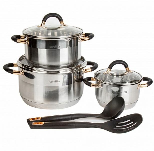 Набор кастрюль нерж. 8пр. ст/кр. (1,8л,3,3л,5,8л+навеска) Nero Rosa