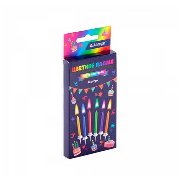Набор свечей д/торта ALINGAR AL11252 с цв.пламенем (6шт) блист.