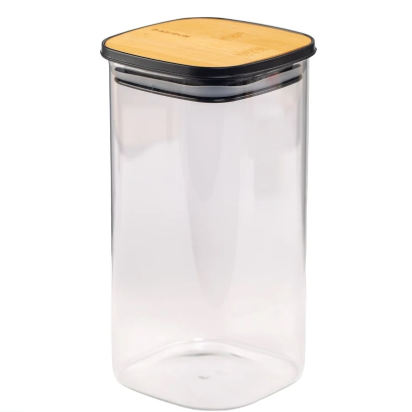 Банка д/сыпучих 1400л с бамбуковой крышкой квадр.
