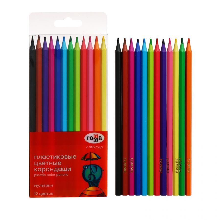 Карандаши цветные пластиковые Гамма Мультики, 12цв., заточен., ПВХ, европодвес