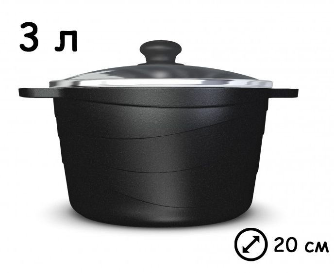 Кастрюля лит. ал. 3л ст/кр.,Каменная Черный гранит Нева металл