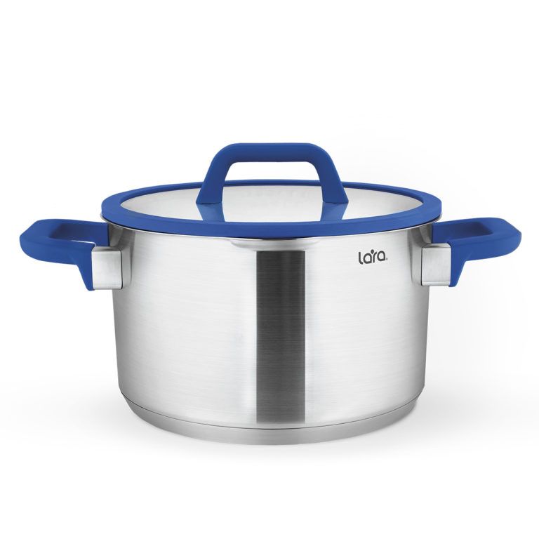 Кастрюля нерж. 6,2л 24*12см,капсул. индукц. дно,отверст.д/слива,ст/кр.с силик.ручками Lara Сапфир