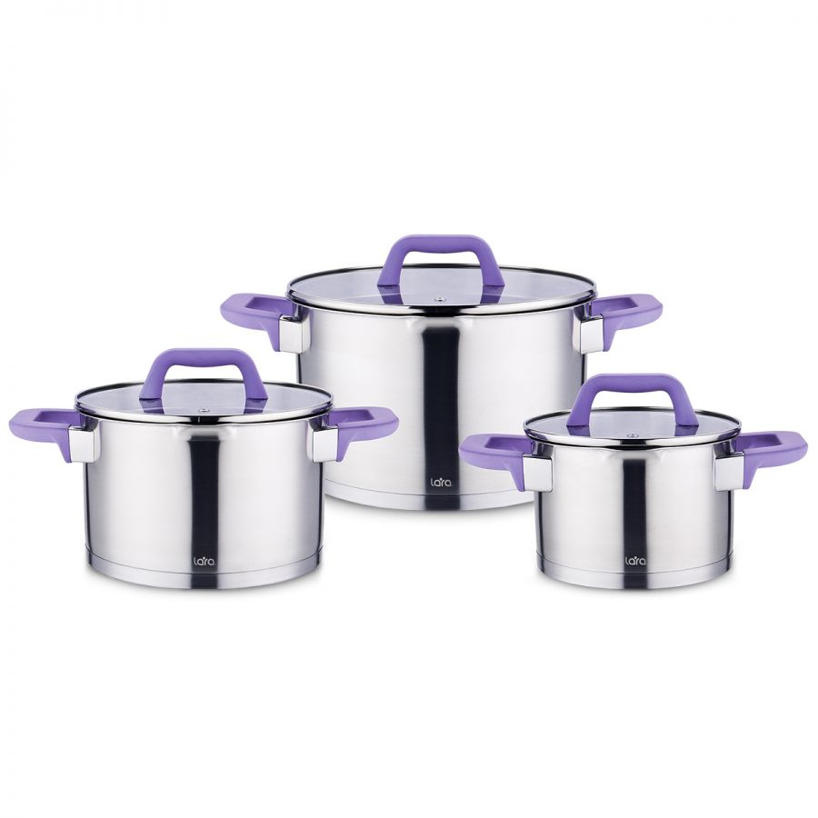 Набор кастрюль нерж. 6пр (2л,2.8л,5л) индукция, Lara Лаванда