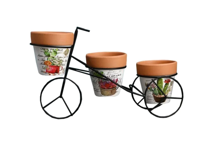 Набор кашпо 0,3л керамич.3шт, на метал подставке Велосипед 33*10*20см