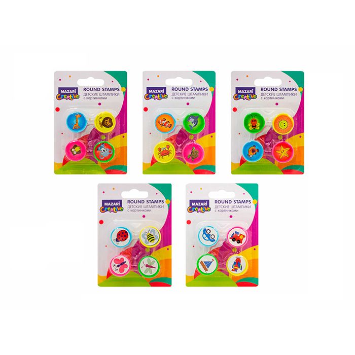 Набор штампиков с картинками MAZARI 2,2*3см (4шт) блист.