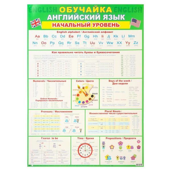 Плакат Обучайка. Английский язык. Начальный уровень А4