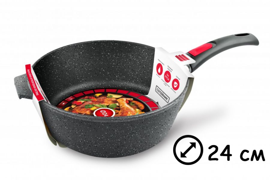 Сотейник 24см лит. ал. а/п высокий Каменная Чёрный гранит с/р Нева металл