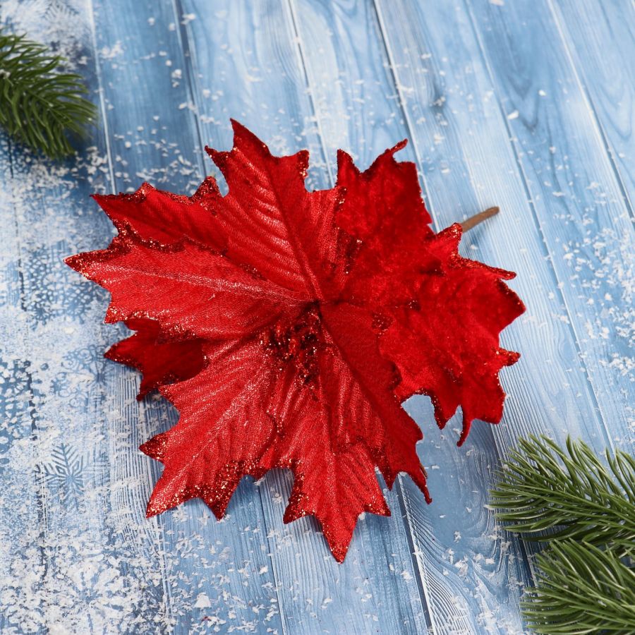 Ёлочная игрушка/Декор «Зимний цветок», резной, 17*12 см, красный