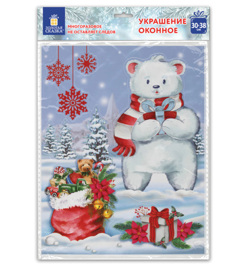 Наклейка на стекло двусторонняя МНОГОРАЗОВАЯ 30*38см Медвежонок, ЗОЛОТАЯ СКАЗКА
