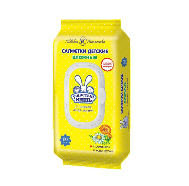 Салфетки влажные детские УШАСТЫЙ НЯНЬ очищающие, 80 шт