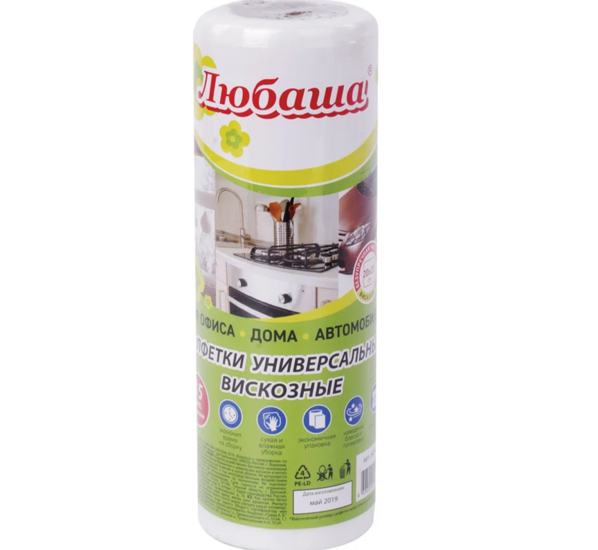 Салфетки универсальные вискоза 20*23 см 35 штук в рулоне белые ЛЮБАША