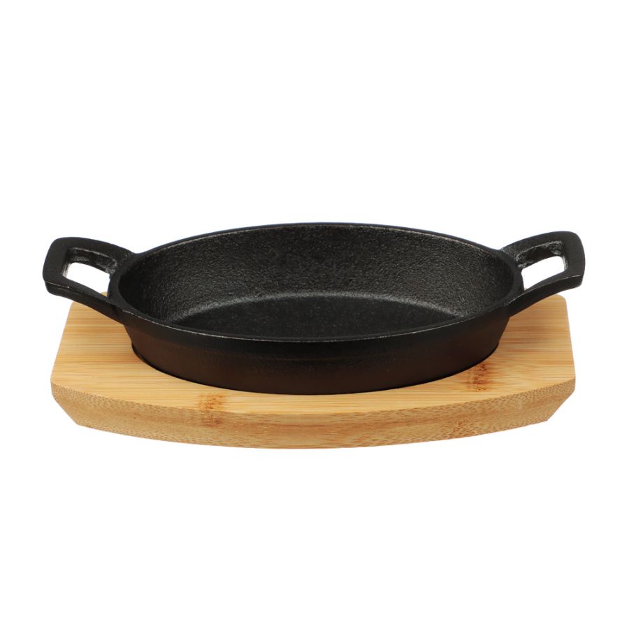 Сковорода чугун,мини на подставке из бамбука,SATOSHI, овальная, 15х9.8см