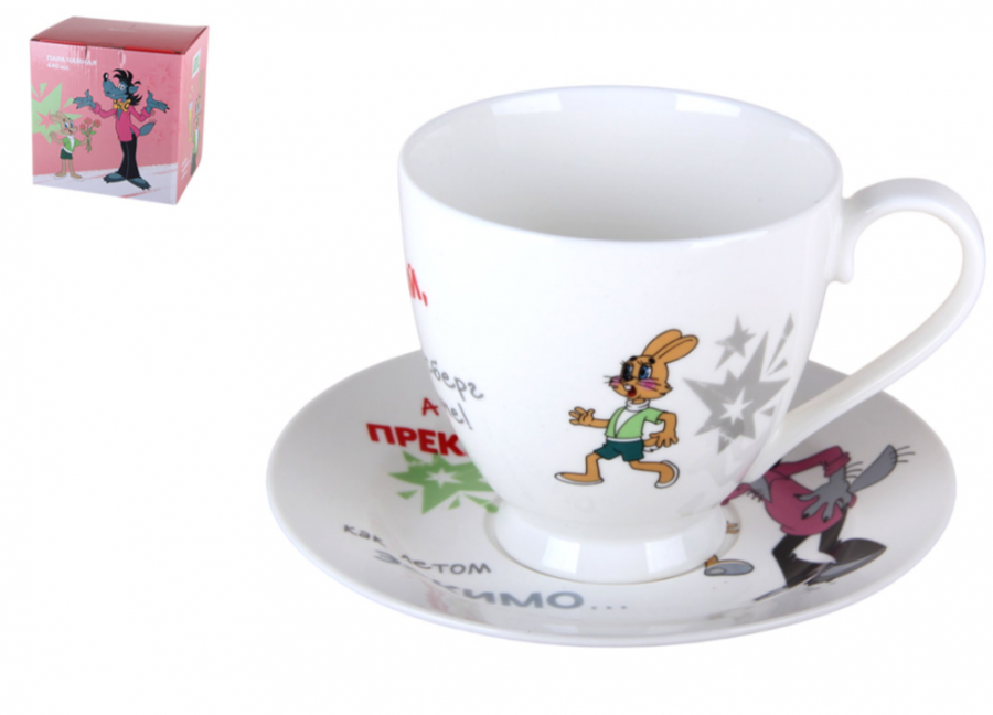 Чайная пара 440мл круглая,фарфор п/у,Ну,погоди!