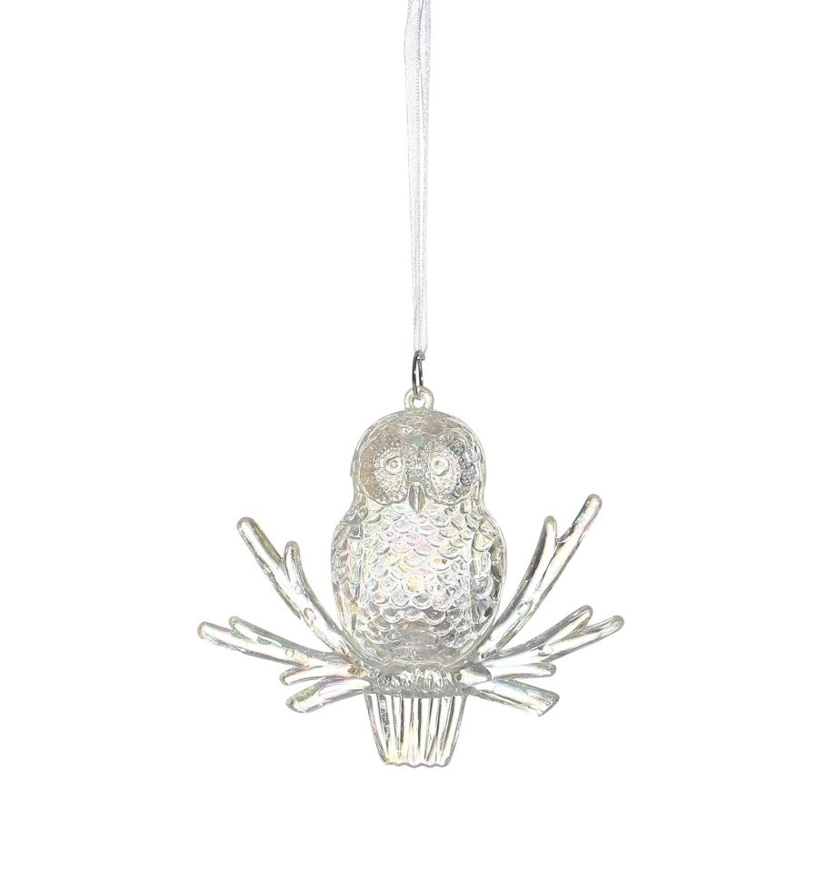 Ёлочная игрушка «Сова перелив», 9*10 см, прозрачный перелив